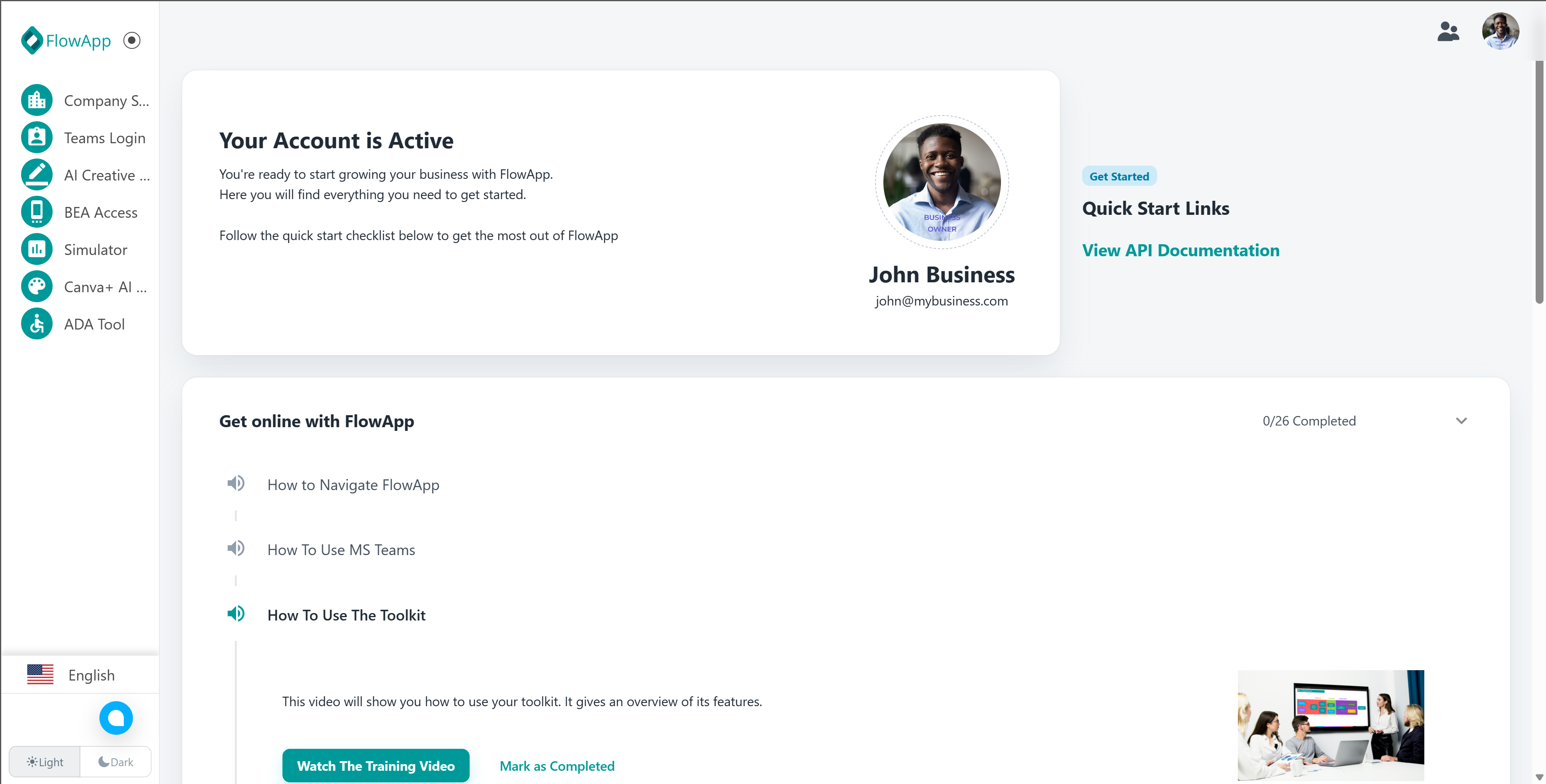 FlowApp is our SaaS where you gain access to our toolkit and training videos. FlowApp also gives you access to our other tools. Some of which are included with your Company Strategy purchase, and some which are available as an upgrade.